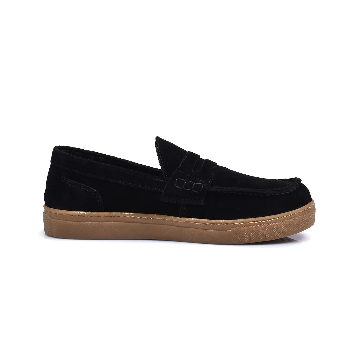 Keep it smart and casual with this Suede Penny Loafer from Normandy. Featuring a rich natural suede upper sitting on a contrasting gum-colored rubber sole, this shoe bridges the gap between dressy and relaxed, making it perfect for chinos and dark denim.